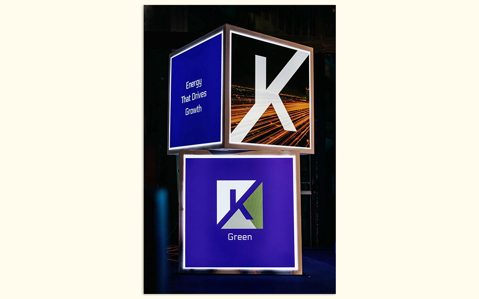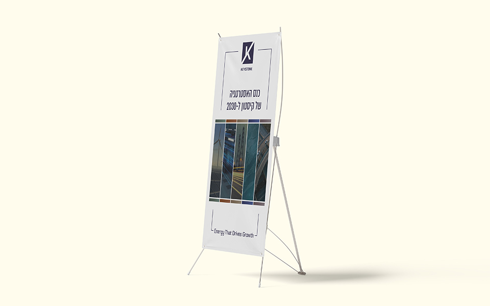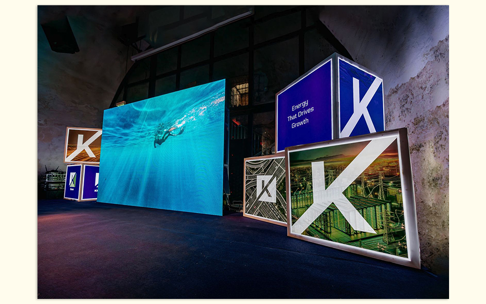 מיתוג אירוע חשיפת האסטרטגיה של החברה ל-2030, על בסיס שפה עיצובית חדשה, כולל שלט לכניסה, תגי שם, גלויה, סטנד שקוף לברקוד וקוביה של הלוגו כסנטר לשולחנות, וקוביות לד ממותגות כתפאורה.